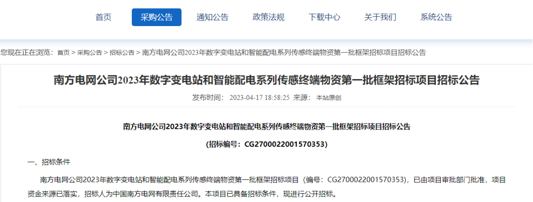 4月17日,南網正式發布《南方電網公司2023年數字變電站和智能配電系列傳感終端物資第一批框架招標項目招標公告》(關注公眾號并發送消息“南網招標公告”,即可跳轉招標公告原文鏈接),文件中包含了1.25億的“配電局放監測裝備”標的物。